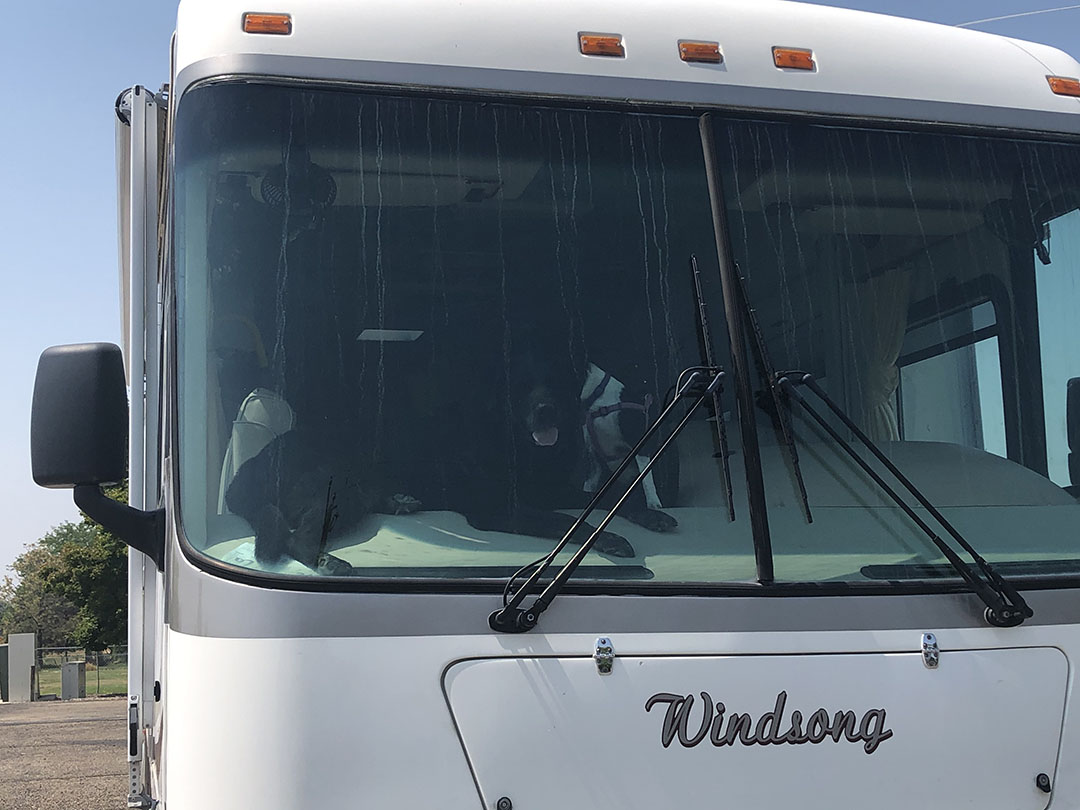 A quick stop at Aunt Kathy and Uncle Larry’s before we had dinner at Alex and Patty’s house. (food was awesome!) Patty sent leftovers with us! Found Bodi stretched out on the dash when we got back to the camper!!!